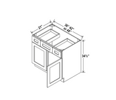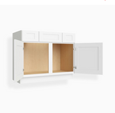 Nuestro mueble de baño combinado Shaker blanco mide 87 cm de alto y 53 cm de profundidad, y está disponible en 3 anchos (91 cm, 107 cm y 122 cm). Cuenta con 2 cajones y 2 puertas.