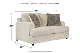 Loveseat : 71″ de ancho × 40″ de profundidad × 39″ de alto; dimensiones de asiento y flujo de aire similares.