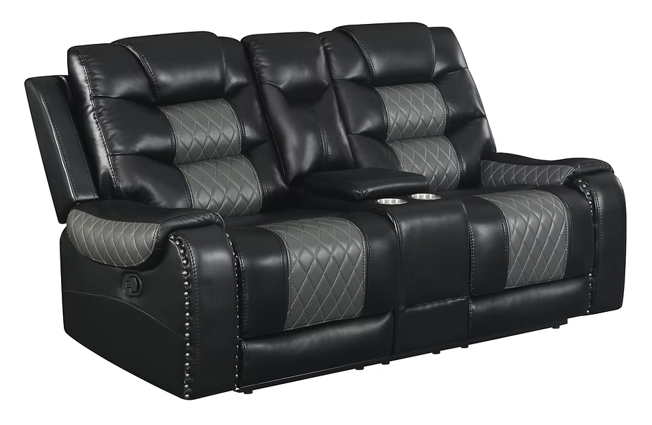 Loveseat reclinable con consola y portavasos: 71" de ancho x 38,5" de profundidad x 41,5" de alto