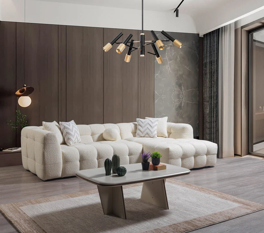 Transforme su hogar con el sillón seccional Ivy Boucle RAF , donde el diseño contemporáneo se combina con una comodidad lujosa.