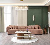 El seccional curvo Lena Boucle de 3 piezas reinventa la comodidad moderna con su diseño amplio y su impactante tela de bouclé naranja. Este seccional de 365 cm es la pieza central perfecta para cualquier sala de estar contemporánea, ofreciendo un amplio espacio para sentarse, perfecto para reuniones familiares o para recibir invitados.