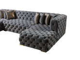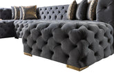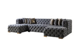 El seccional doble Neva de terciopelo gris encarna el lujo y la elegancia, diseñado para ser el centro de atención de cualquier habitación. Totalmente capitoné y elaborado a mano con meticulosa atención al detalle, este seccional exhibe una artesanía única. El rico terciopelo añade un toque de opulencia, creando una sensación suntuosa y un aspecto sofisticado. Perfecto para relajarse con estilo, este seccional combina comodidad y sofisticación en un conjunto impresionante.