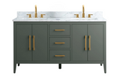 Mueble de baño con lavabo doble de 60" y encimera de mármol artificial