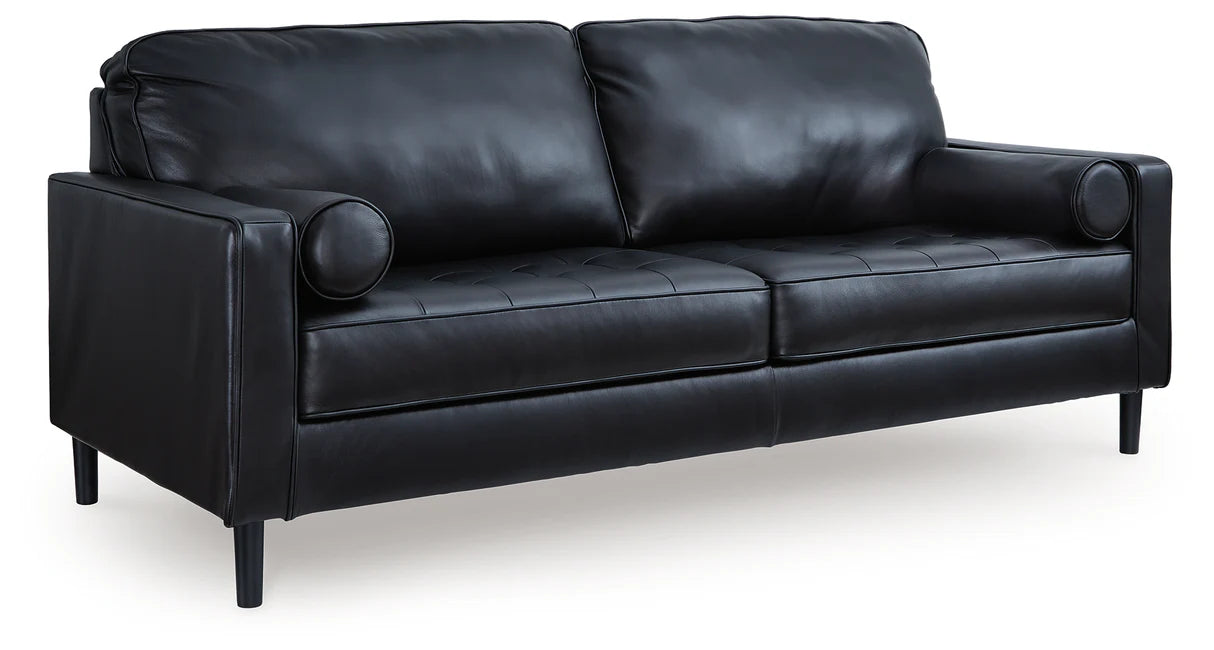 The Bryceview collection captures the essence of timeless mid-century modern design with its clean lines, sleek track arms, and elegant tapered legs. Upholstered in a luxurious blend of genuine top-grain leather in key seating areas and skillfully matched faux leather, this collection offers sophisticated style and enduring comfort. Perfect for creating a statement in contemporary living spaces, it's available as both a spacious sofa and a versatile loveseat to accommodate your layout needs.