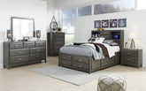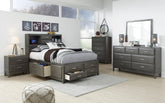 El juego de dormitorio juvenil Caitbrook con estantería y plataforma de almacenamiento combina un estilo rústico moderno con una funcionalidad inteligente. Disponible en gris envejecido o blanco envejecido, esta cama cuenta con un cabecero con estantería y espacio de almacenamiento integrado debajo, lo que la hace perfecta para niños o adolescentes que necesitan espacio adicional. Combínala con la mesita de noche, la cómoda, el espejo o la cómoda opcional a juego para un dormitorio completo, elegante y práctico.