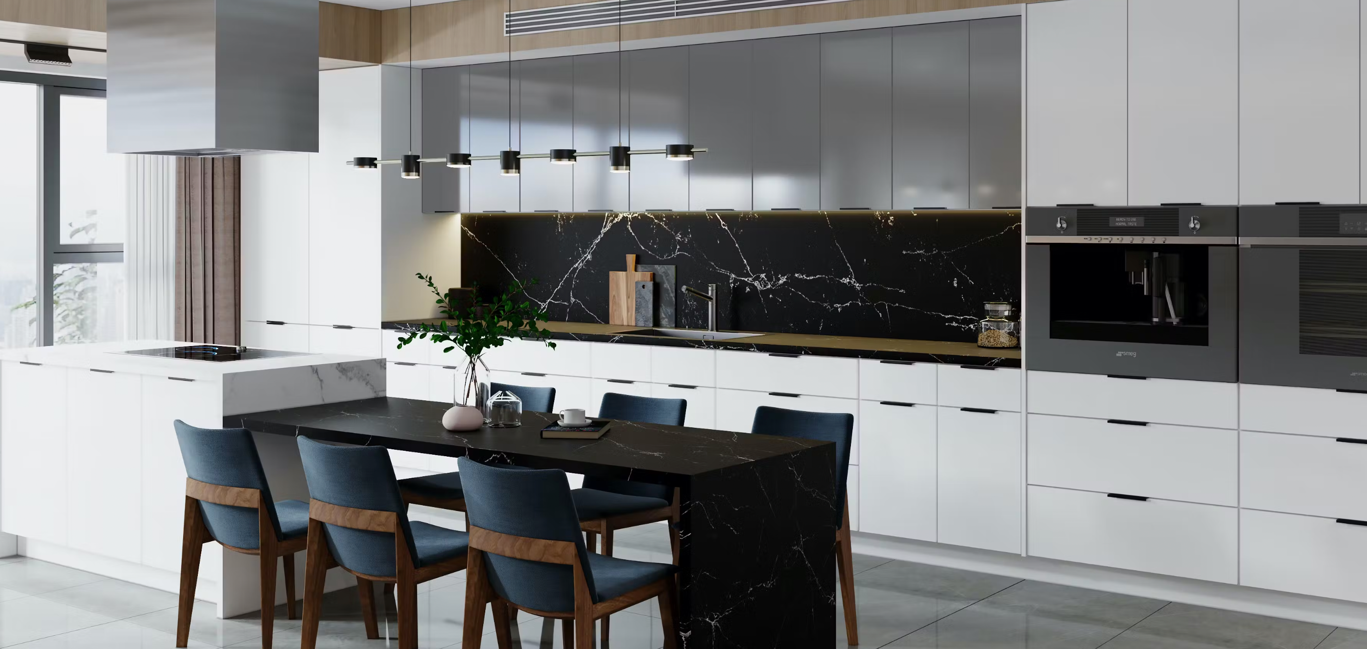 - Impresionantes diseños 3D : ¡Visualiza la cocina de tus sueños antes de que se haga realidad! Nuestros servicios de diseño 3D de vanguardia hacen realidad tus ideas, permitiéndote ver cada detalle y tomar decisiones informadas sobre el diseño, la distribución y los acabados de tus gabinetes.