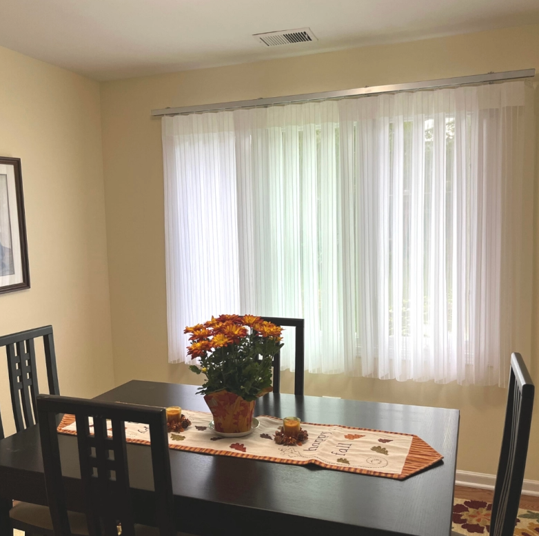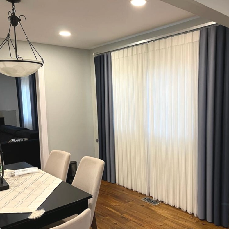 - Translúcido: Experimente la elegancia de las cortinas verticales de tela translúcida que ofrecen la apariencia de una cortina, combinada con el control de la luz y la privacidad de las persianas. Estas persianas lavables a máquina ofrecen una solución elegante y funcional para sus ventanas.