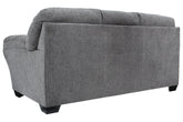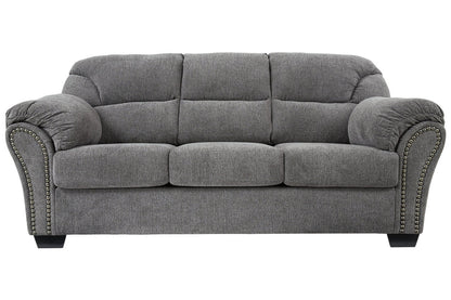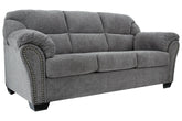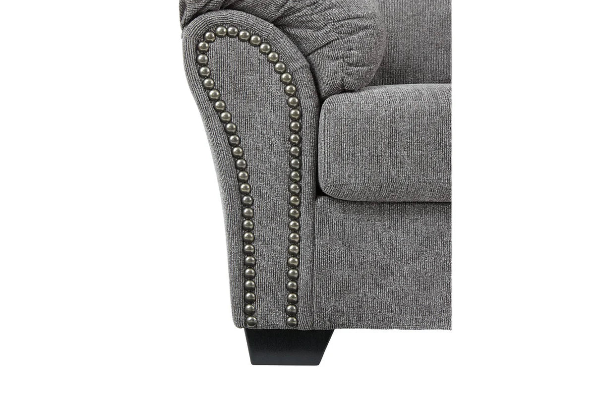 The Allmaxx Seating Collection in Pewter Gray brings together plush cushioning, bold contemporary styling, and lounge-ready comfort. Both the sofa and loveseat feature a chic divided-back design and generously padded pillow-top armrests that invite you to unwind. Flared arms outlined with black nickel-tone nailhead trim add a refined modern edge, while the soft chenille upholstery enhances the cozy feel. Built on a durable corner-blocked frame and supported by a sag-resistant platform foundation, these pieces maintain their shape and support through everyday use.