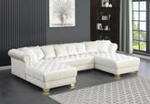 Realce su sala de estar con la elegancia contemporánea del sofá y loveseat Jordan II de New Era Furniture. Este impactante conjunto está confeccionado con una lujosa tapicería de terciopelo, patas cromadas y detalles de tachuelas cromadas, combinando un diseño moderno con la máxima comodidad.