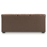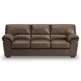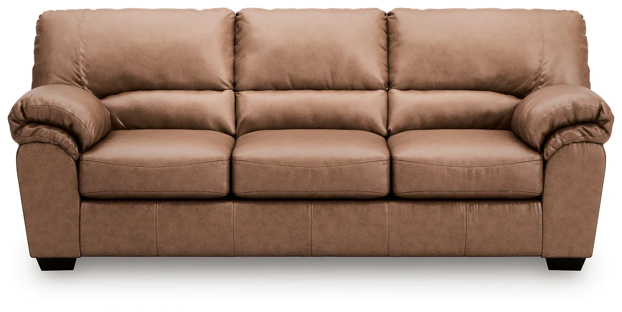 Experience a new standard of modern comfort and style. This stunning sofa features supremely soft, durable cushions adorned with high-fashion jumbo stitching, making it the ultimate choice for cool, contemporary living. Upholstered in rich faux leather with an upscale feel that rivals the real thing, it offers a luxurious look without compromise. Choose between warm Caramel or deep Umber to perfectly match your décor.