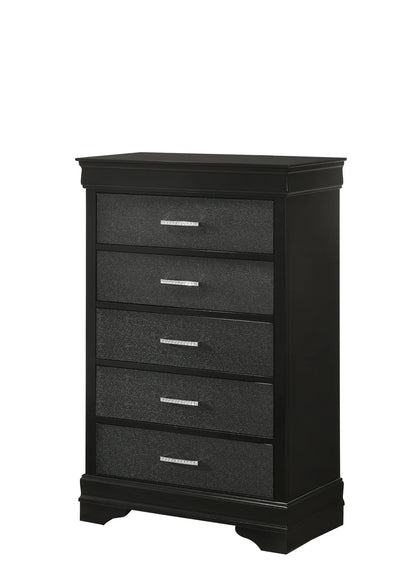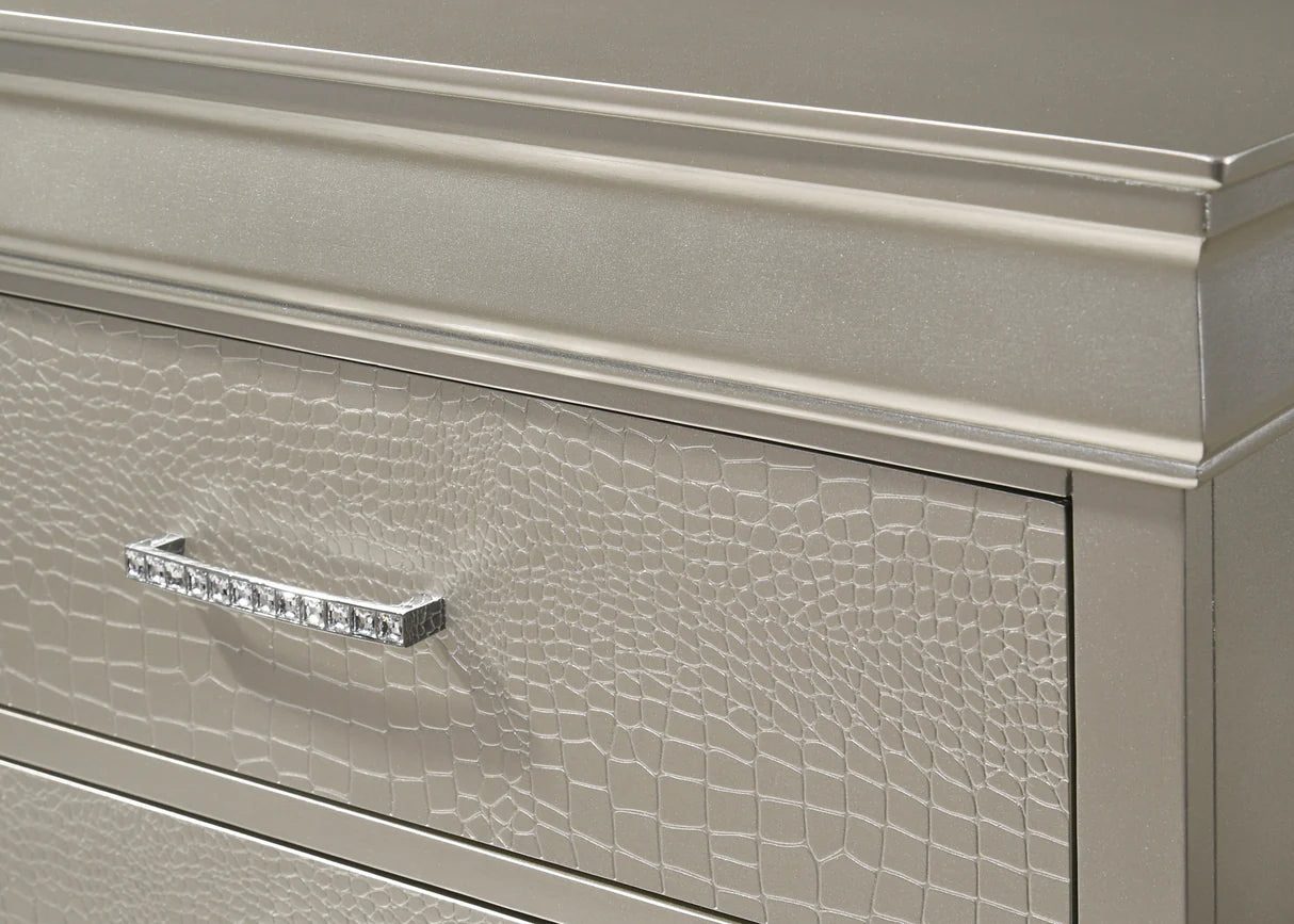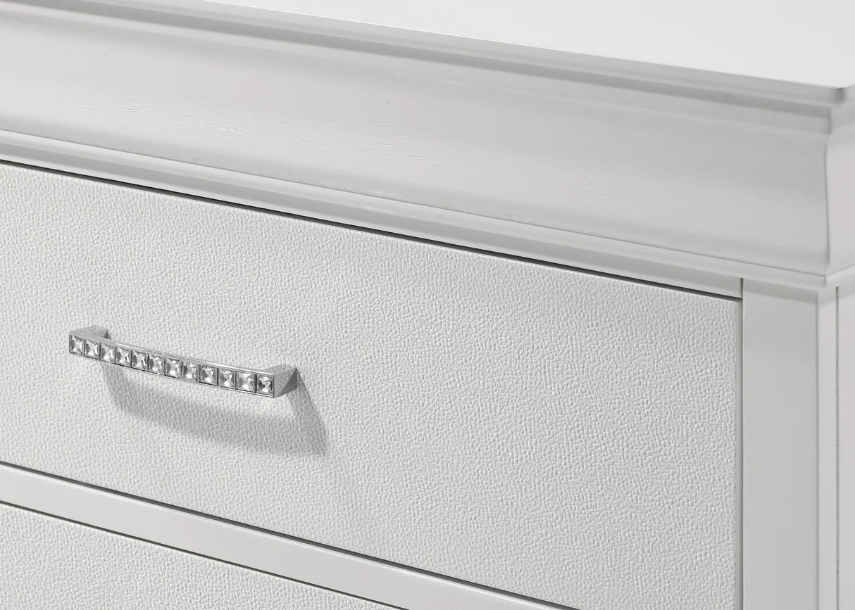 Introducing the Amalia Upholstered Panel Bedroom Set, a collection designed to infuse your bedroom with sophisticated glamour and modern elegance. Available in three captivating finishes—Champagne Silver, Black, and White—this set offers a versatile palette to match any desired ambiance. The defining feature is its elegant, tufted upholstered headboard, which provides luxurious comfort and serves as a stunning focal point. With its blend of soft textures, clean lines, and ample, streamlined storage, this collection creates a cohesive and inviting retreat that balances contemporary style with timeless appeal.