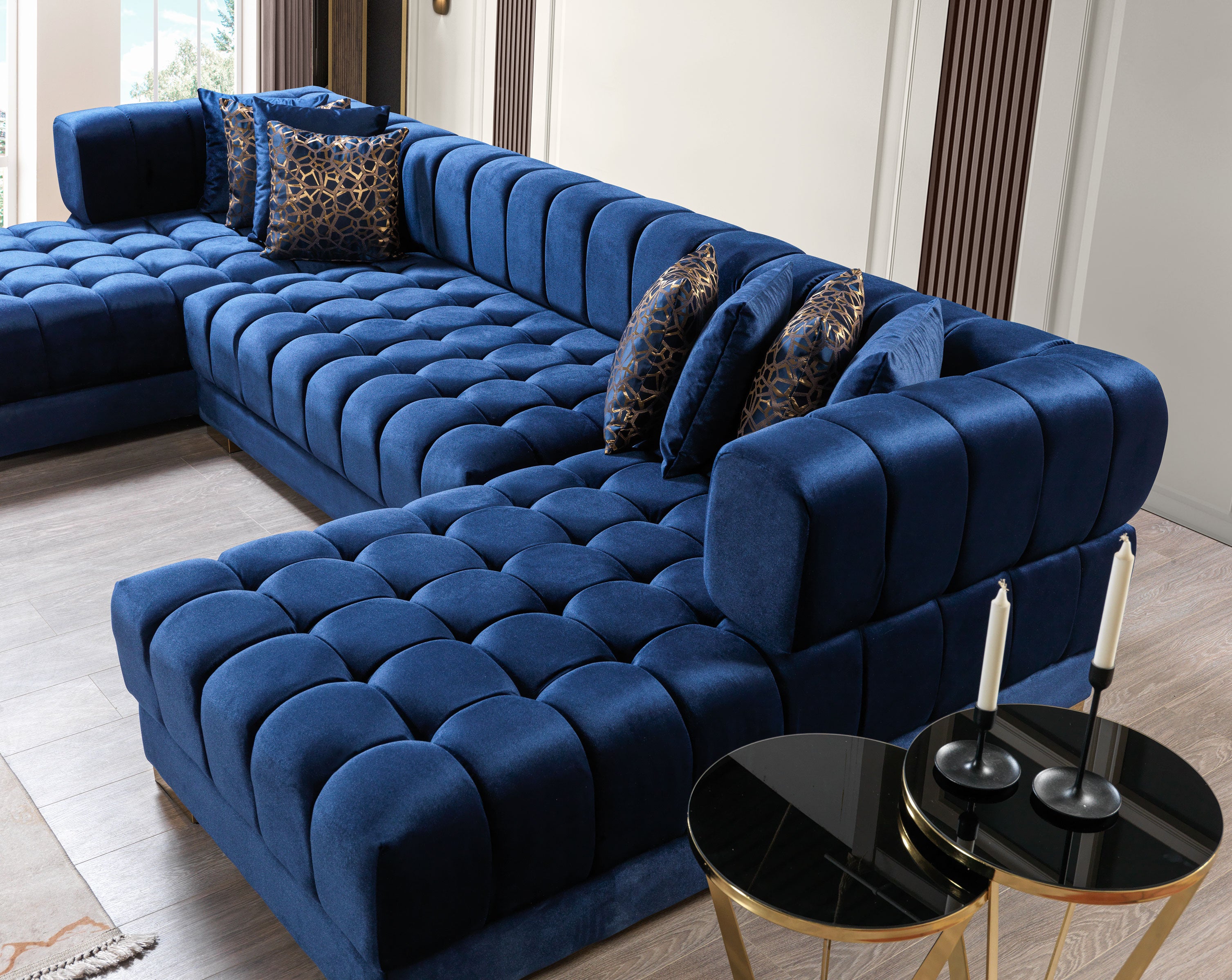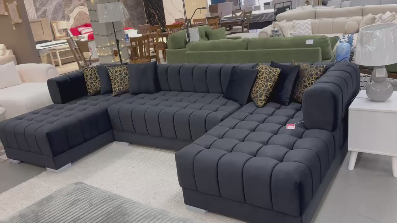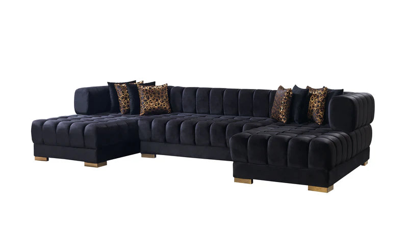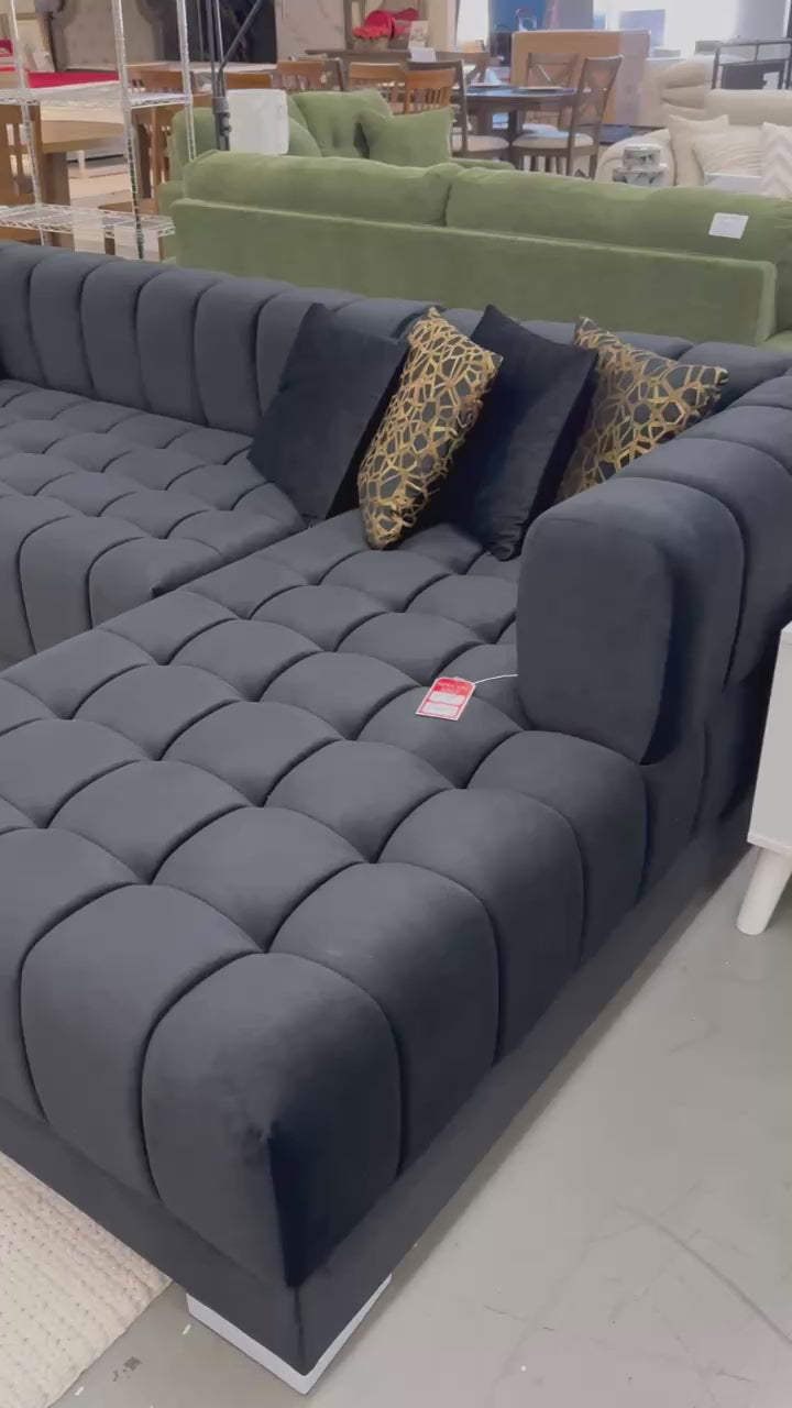 Meet Ariana, our breathtaking double chaise velvet sectional that blends luxurious comfort with timeless elegance. Designed in a versatile U-shape, this sectional offers generous seating, making it the perfect centerpiece for social gatherings or cozy evenings with loved ones.