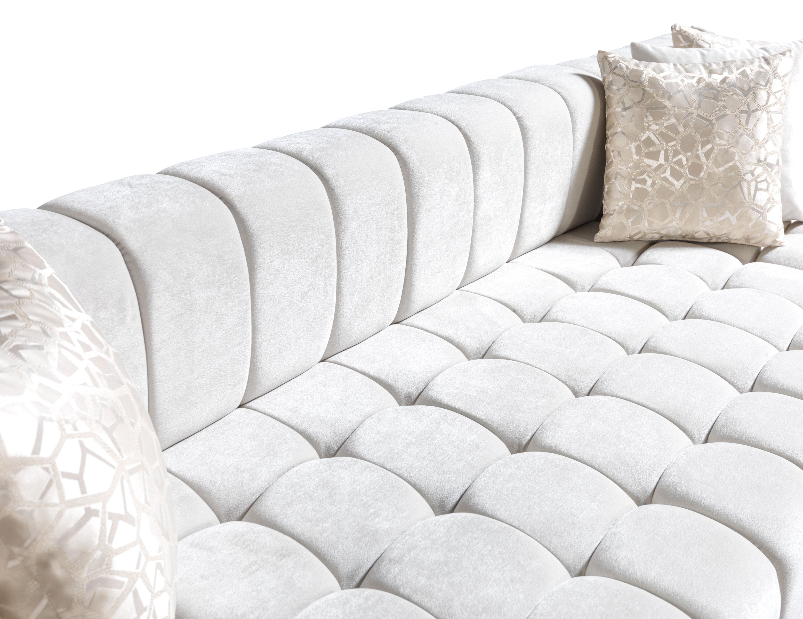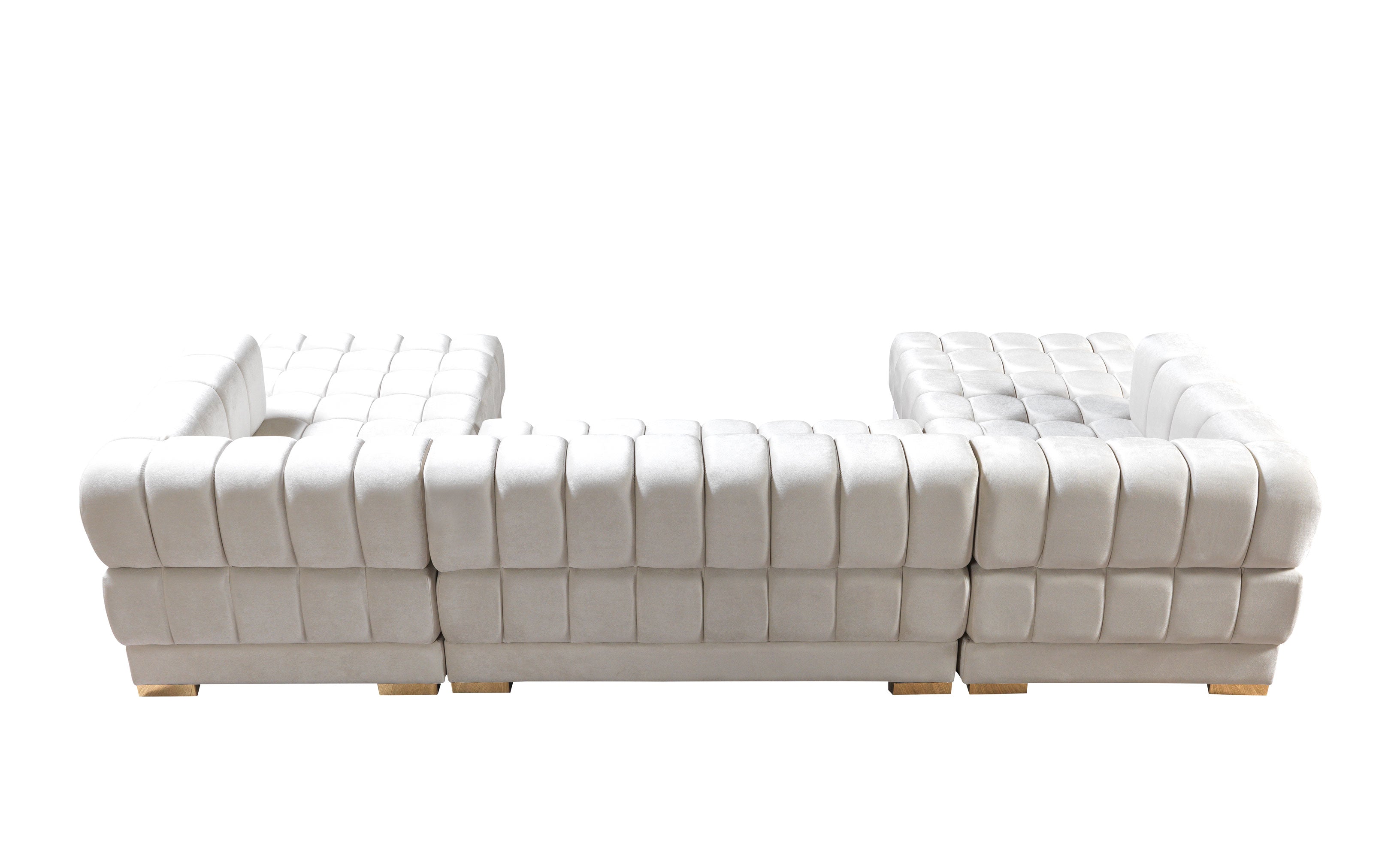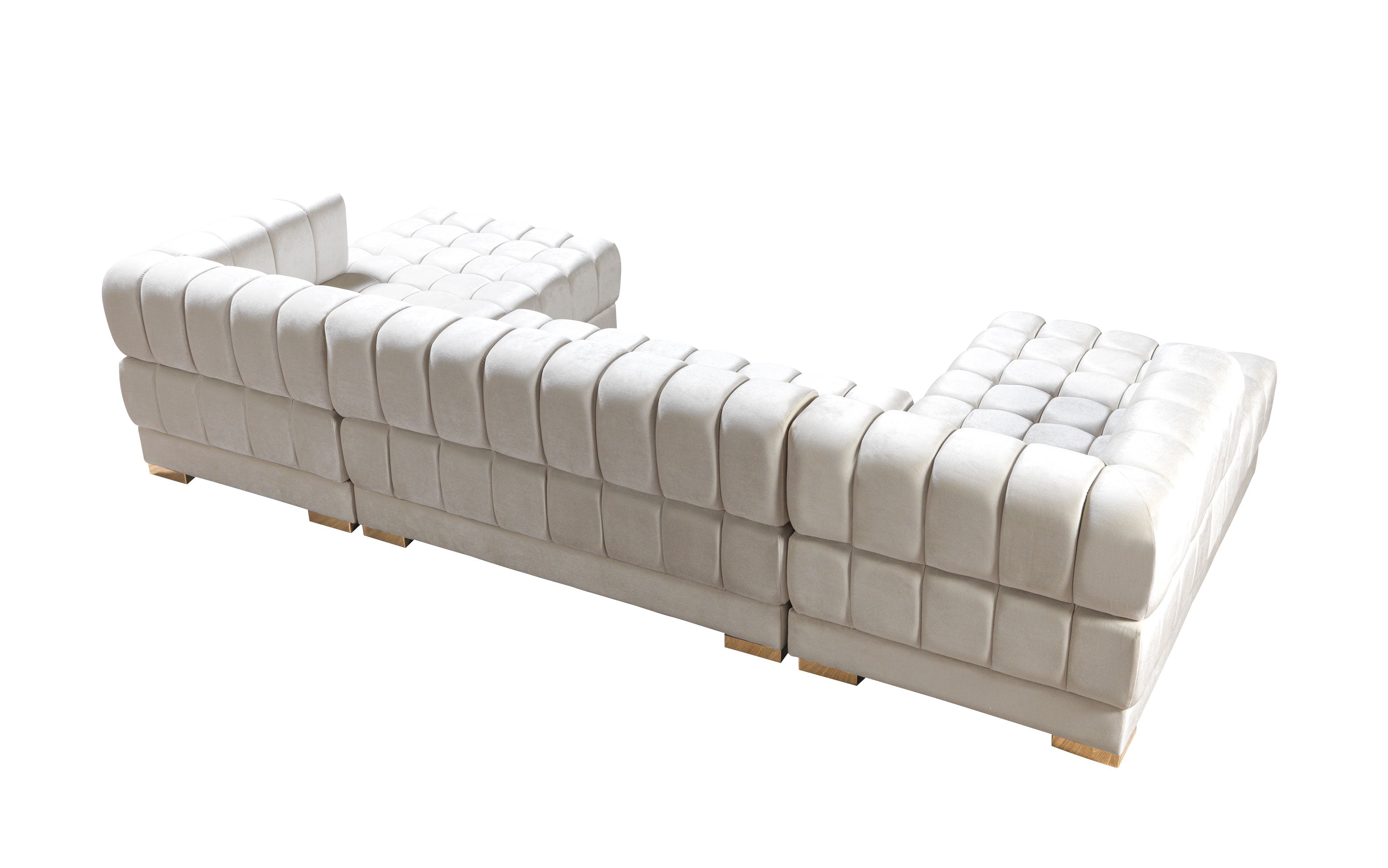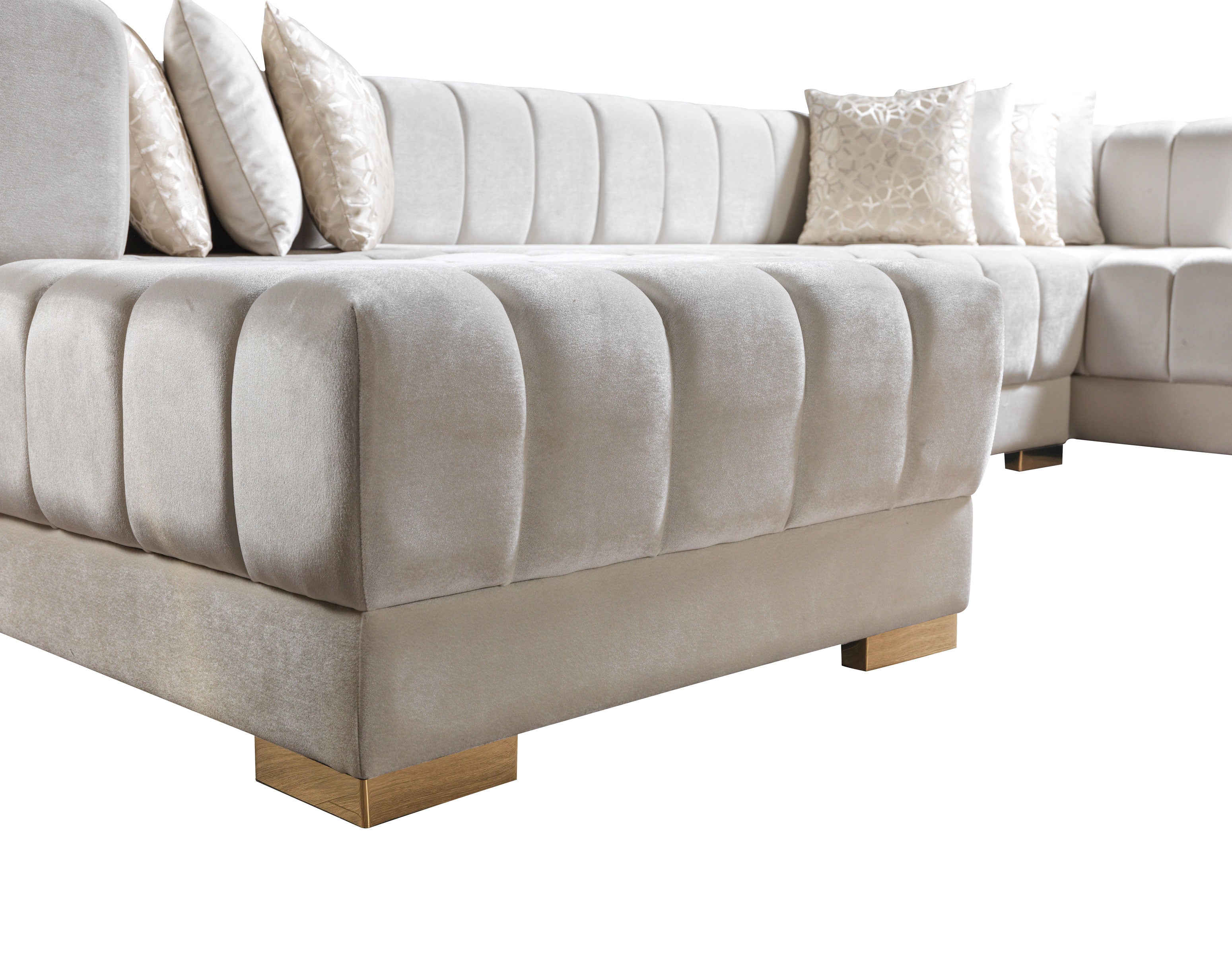 Crafted from high-quality velvet fabric, Ariana delivers an irresistibly soft touch and remarkable durability, ensuring its beauty endures for years to come. Complemented by eight plush pillows, this sectional promises unmatched comfort and a sophisticated aesthetic for your living space.