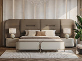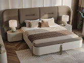The Leora Bedroom Set exudes contemporary luxury with a unified palette of neutral-toned upholstery and clean European-inspired lines. Built with quality materials and thoughtful storage solutions, it offers complete bedroom furnishing in elegant beige finishes. This carbon-neutral collection delivers both visual harmony and solid functionality