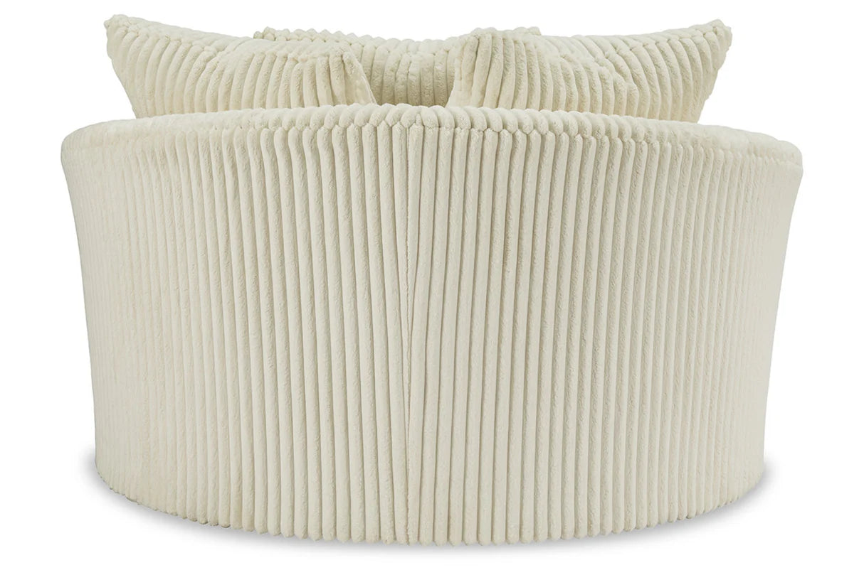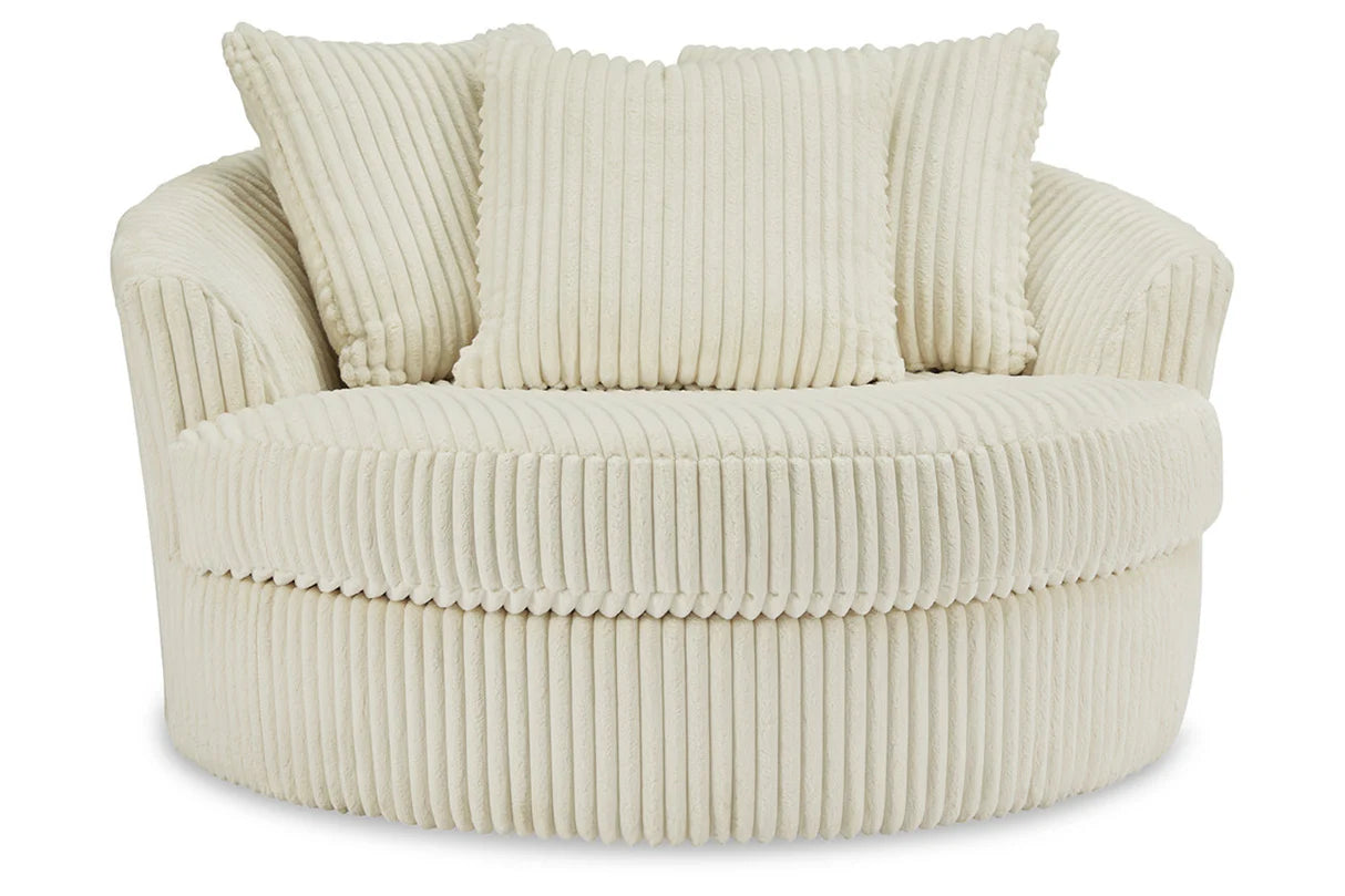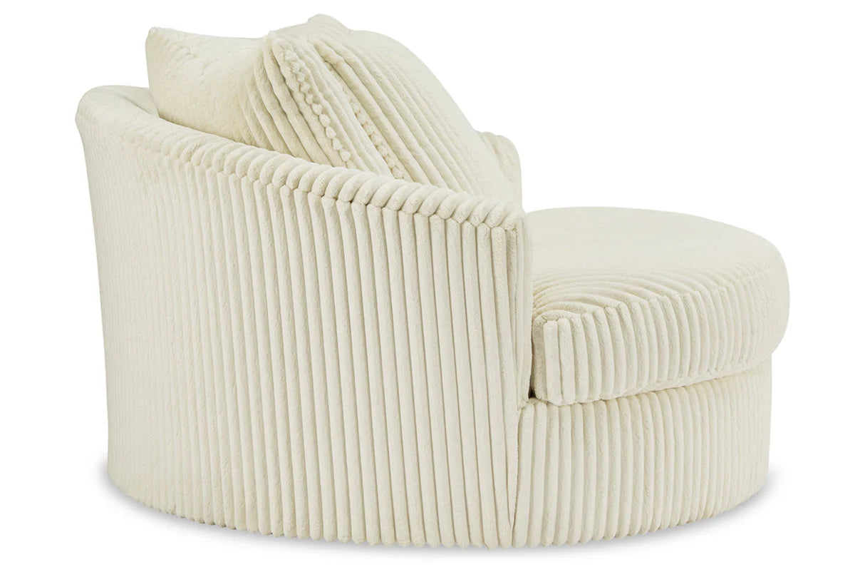 Wrap yourself in casual luxury with the Lindyn Oversized Swivel Accent Chair by Ashley Furniture. With its generously scaled design, cloud-soft textured upholstery, and smooth 360-degree swivel, this chair is the perfect blend of comfort and style. Whether you choose the warm Ivory or modern Gray, it effortlessly elevates any living space.