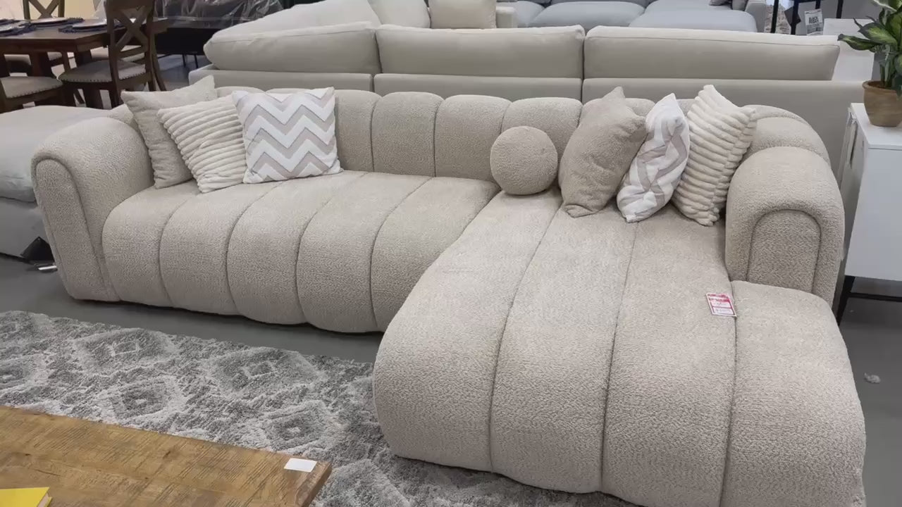 Create a warm and inviting atmosphere in your home with the Lis Boucle RAF Sectional. Shop now and experience the perfect blend of style, comfort, and practicality with DecoHub Home Furniture!