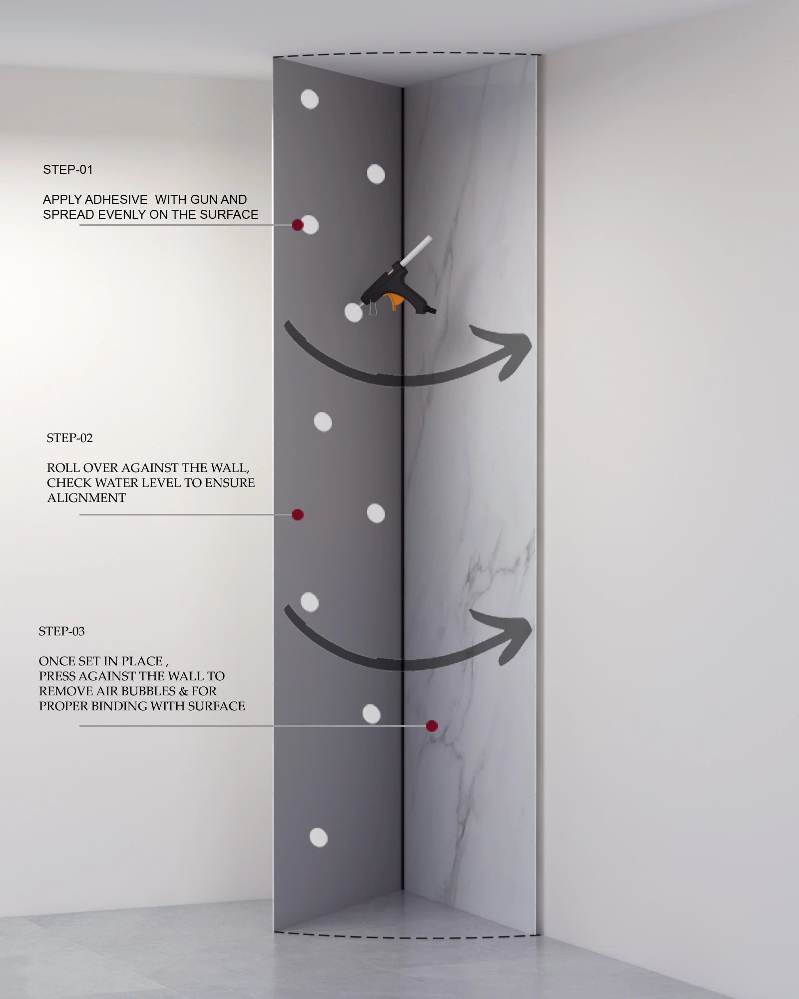 Our panels can be applied directly over tile, drywall, cement, and many other flat surfaces. No need to remove your old wall finish—just make sure the surface is smooth and clean.