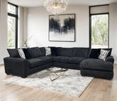 The Sorento Oversized Black Sectional combines contemporary appeal, generous comfort, and everyday functionality to anchor your living space with style and presence. Upholstered in rich black fabric, this oversized sectional delivers deep, plush seating and a relaxed, inviting silhouette that’s perfect for movie nights, family gatherings, or casual lounging. Its substantial layout fills larger rooms with comfortable seating while its sleek lines and versatile tone make it easy to pair with a variety of décor styles from modern and transitional to casual.
