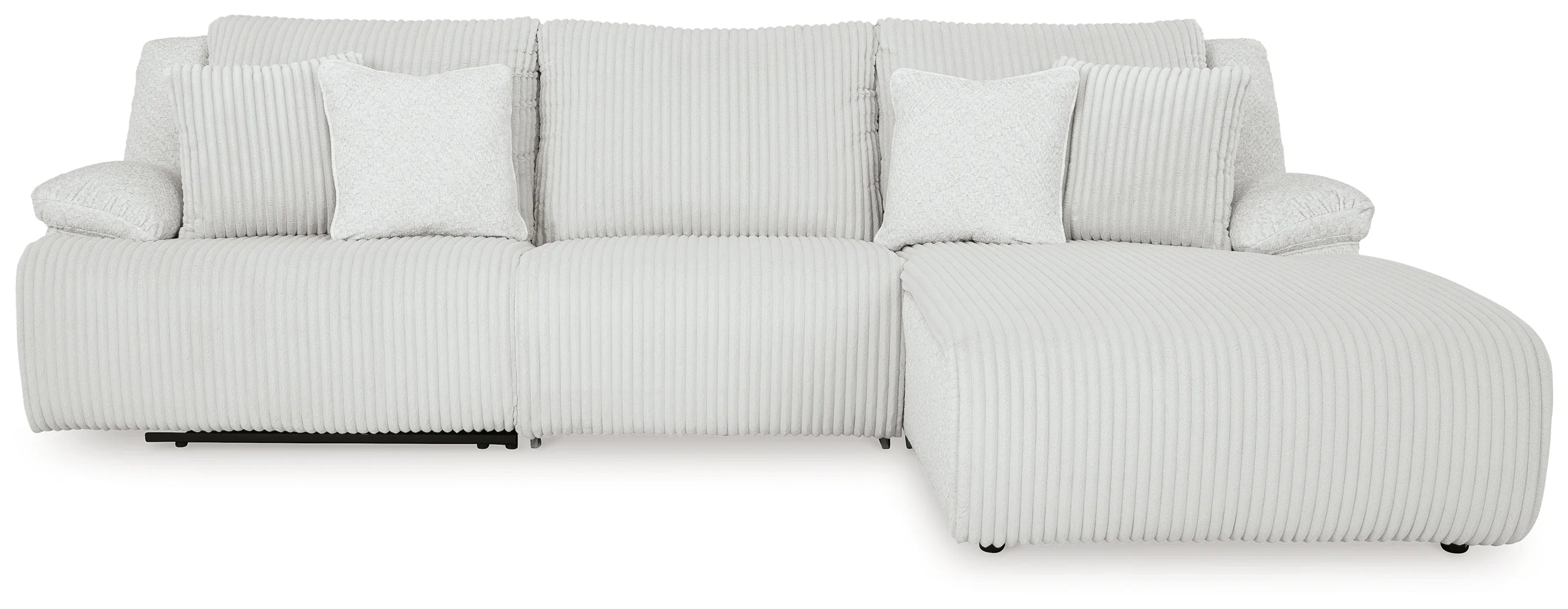 This reclining sectional sofa with chaise offers ultimate comfort and a contemporary style. Plush corduroy cushions provide a cozy texture, while the high-quality foam and polyfiber fill ensure lasting support. Its versatile neutral and rich upholstery options allow this set to seamlessly complement your living space. Ideal for family gatherings or relaxing evenings, it combines both style and functionality in one spacious seating solution.