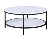 • Compact & Round Design: The 38" round tabletop and 18" height create a balanced central coffee surface ideal for both small and larger living rooms.