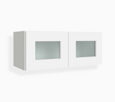 Our 12″ White Shaker Double Wall Cabinet with Glass Door is 12″ in height, 12″ deep, and available in 5 widths (24″, 27″, 30″, 33″, 36″).