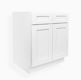 White Shaker Sink Base With Double Doors and Drawers from Moda Cabinetry. Enjoy unbeatable prices with our no credit needed financing option, fast delivery and best customer service. We proudly serve as the official dealer of Moda Cabinetry, offering a range of expertly crafted, affordable pieces that encompass timeless beauty and sleek designs.